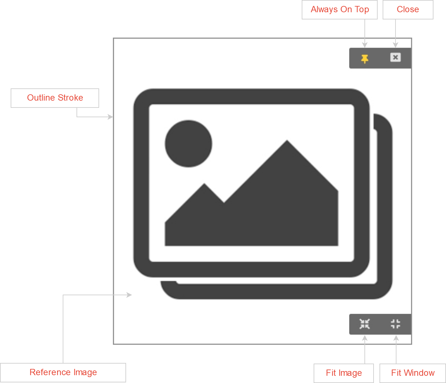 Outline Stroke - it is the outer stroke around the Ref window that helps to spot its boundaries. Move the mouse pointer over the stroke, the pointer will change its appearance, then simply drag the stroke in the desired direction to resize the Ref window. The Outline Stroke is especially useful when the Ref window is in Compact Mode.