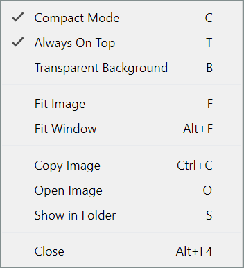 Always On Top - "pin" the Ref window on top of all other currently opened windows. By default, this feature is turned on. You can use the T hotkey for toggling this mode as well.